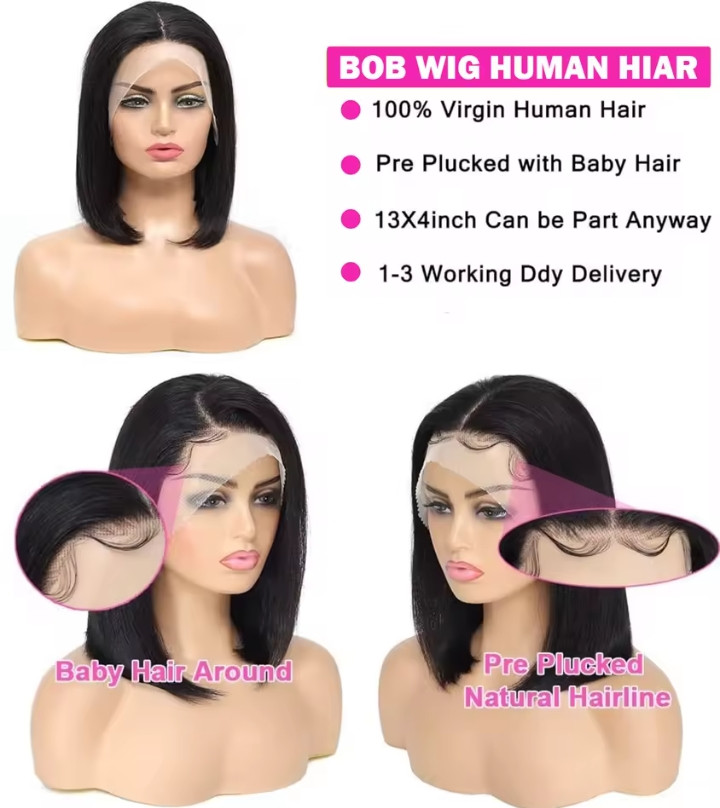 18Inch 180%Density Natural Black 13x4Lace Front Wigs Soft Short Cut Bob Wigs PrePlucked Daily Glueless WIth Baby Hair