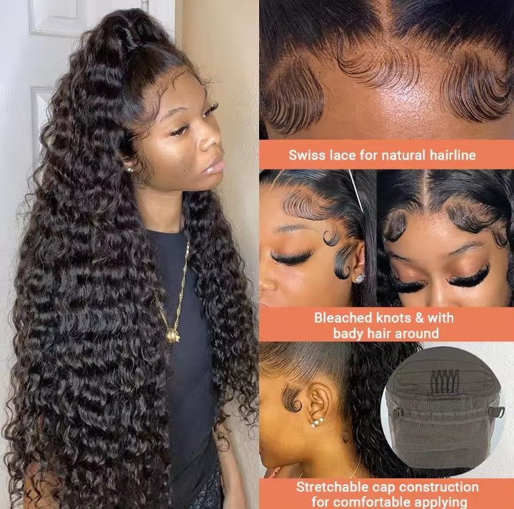 250% Black Curly 13x6 40 Inch Hd Lace Frontal Wig Deep Water Wave Human Hair 100% Brazilian