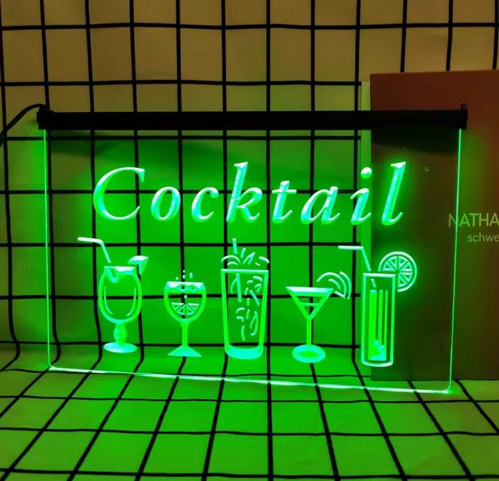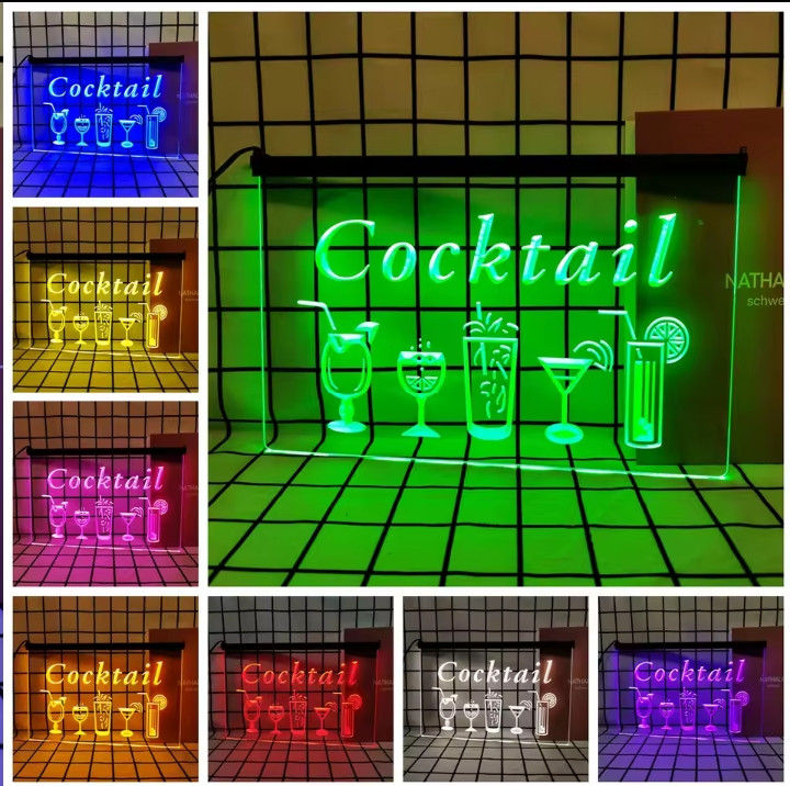 Cocktail-Retro LED Neon Sign Home Decor with Vintage Plaques and Posters for Room Office
