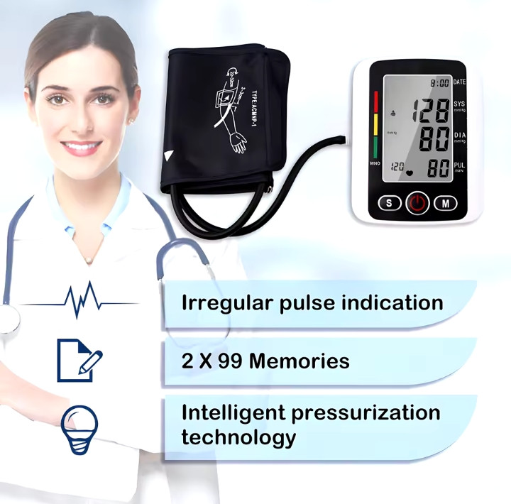 Digital Blood Pressure Monitor Arm Sphygmomanometer Heart Rate Pulse Meters Big Screen Automatic Tonometer with Cuff