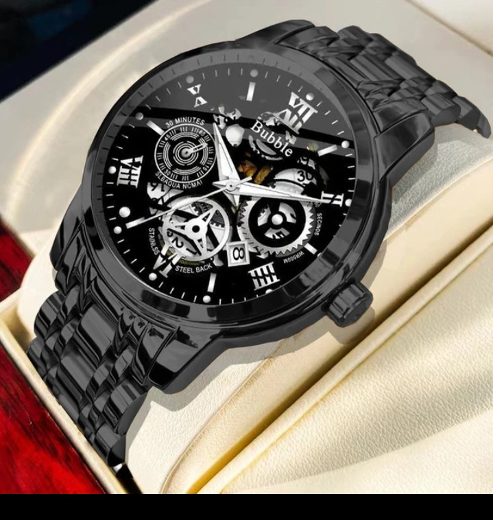 Watch For Men Trendy High end Light Luxury Versatile Quartz Watches Waterproof Roman Hollow Male's Clock Watch Quality set