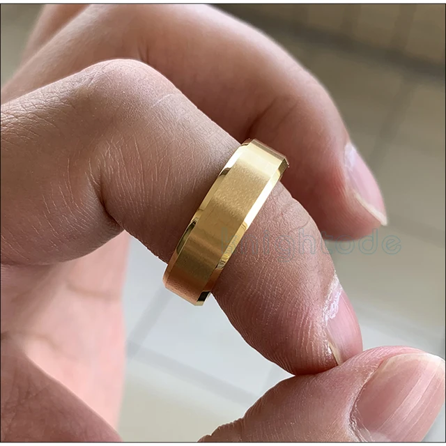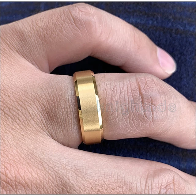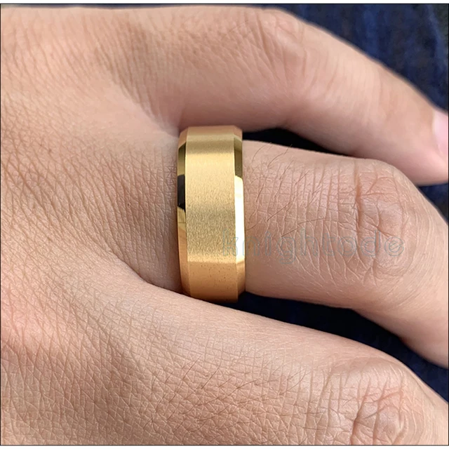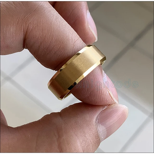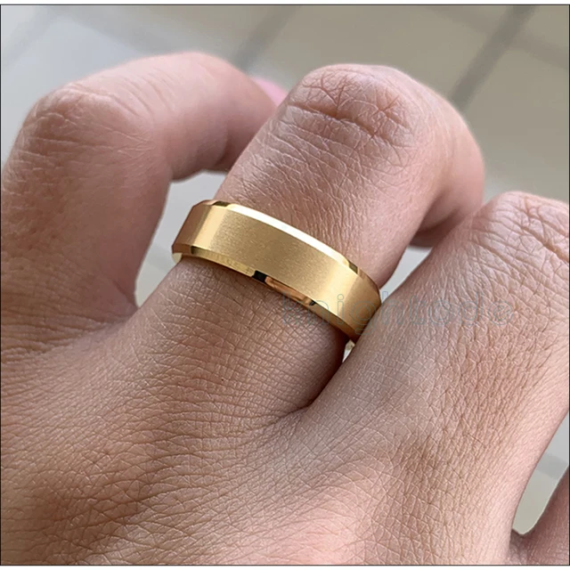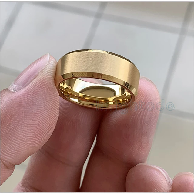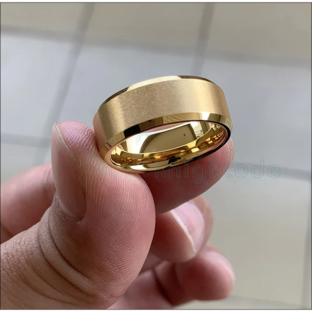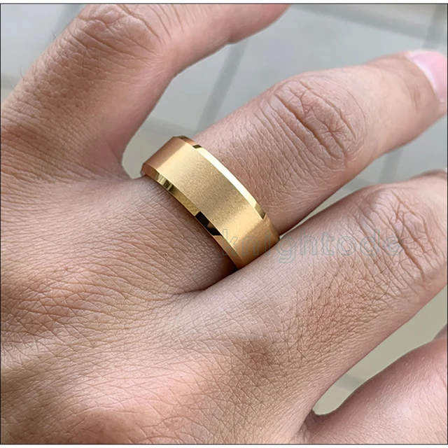 8mm Gold Tungsten Ring Matte Finish Beveled Edges