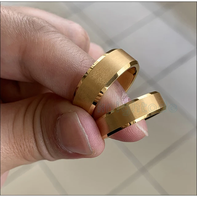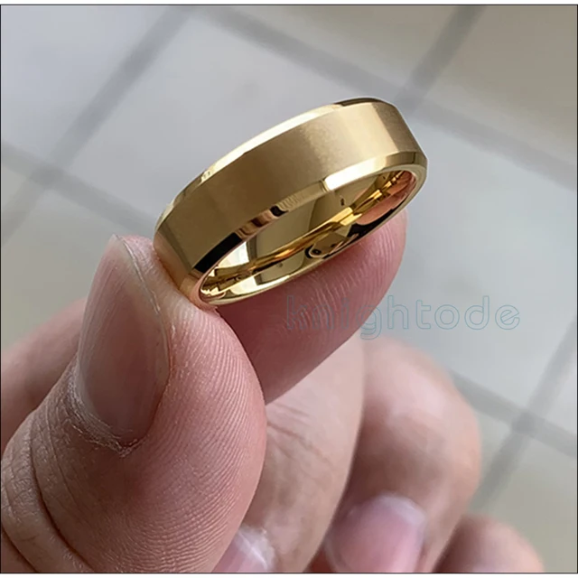 6mm Gold Tungsten Ring Matte Finish Beveled Edges