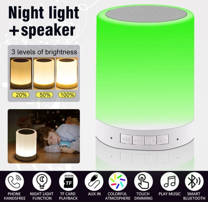 • Night Light Bluetooth Speaker, Portable Bluetooth Speakers, Touch Control, Color Bedside Table Light, Smart Touch Control Color Changing Stereo Subwoofer, Speakerphone/TF Card/AUX-in Supported.
