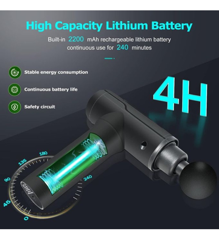 • [USB Rechargeable]This massager has a built-in 2200mAh lithium battery, which has high efficiency, stable energy consumption, and long working time, up to 10h.