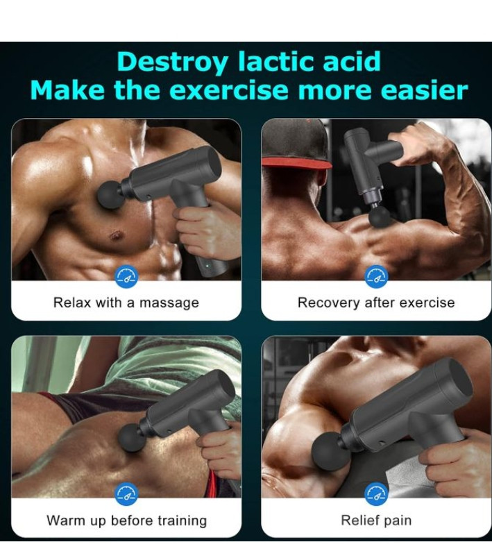 【Deep Muscle Relaxation】The massage gun can provide deep relief from body aches and pains through deep and powerful muscle massage after exercise. Athletes holding a massage gun can help the body recover faster, promote muscle repair, improve blood circulation and relieve lactic acid. It can also be used to prepare the body during the warm-up before exercise.