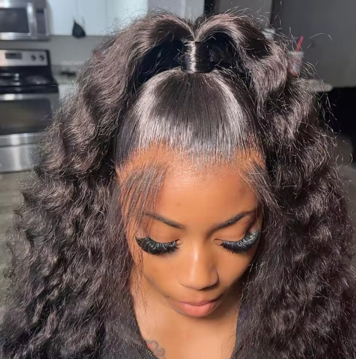 250% Black Curly 13x6 40 Inch Hd Lace Frontal Wig Deep Water Wave Human Hair 100% Brazilian