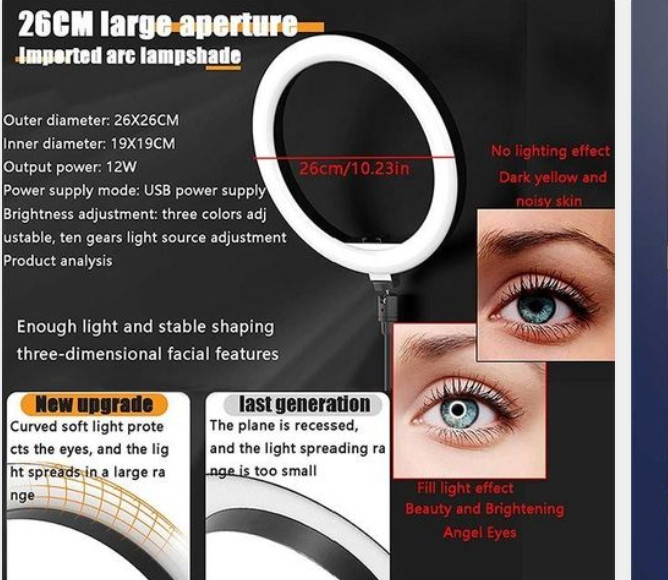 2. 2 in 1 design combines phone holder and selfie ring light, it is a professional tool for creating live video/recording with smartphone or computer. Perfect fill light, suitable for makeup, live broadcast, lying flat, selfie, filming, video recording, online teaching, dark scene vlogging, etc.