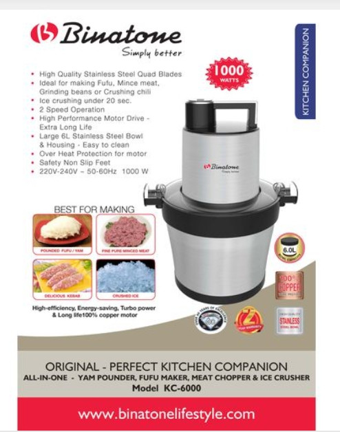 The Binatone Yam Pounding Machine KC-6000 is portable and is used for preparing pounded yam and much more and enjoy them with friends and family.