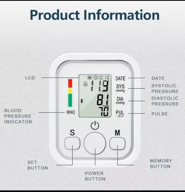 Blood Pressure Monitor Digital Tonometer Upper Arm Blood Pressure Meter Automatic BP Medical Sphygmomanometer Pulse
