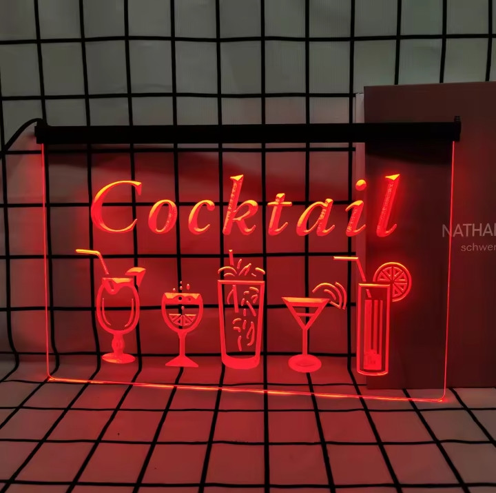 Cocktail-Retro LED Neon Sign Home Decor with Vintage Plaques and Posters for Room Office