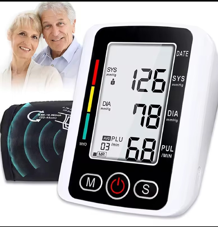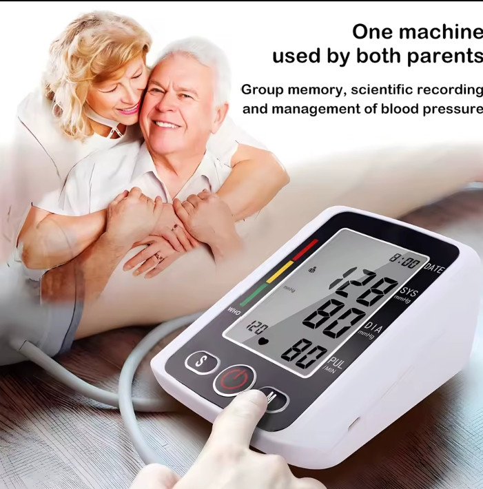 Digital Blood Pressure Monitor Arm Sphygmomanometer Heart Rate Pulse Meters Big Screen Automatic Tonometer with Cuff