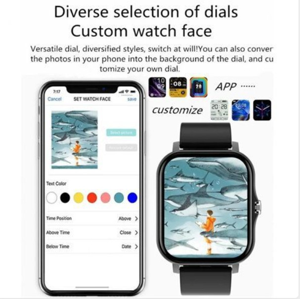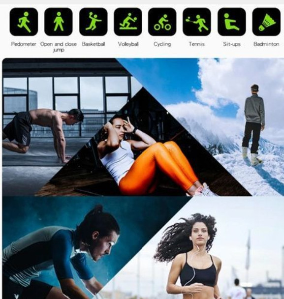 Custom wallpaper, Bluetooth call, music control, social APP message reminder, incoming call reminder, SMS reminder, multi exercise, alarm clock reminder, sedentary reminder, search for mobile phone, music playback, stopwatch, step counting, distance, calories, sleep monitoring, heart rate Monitoring, blood pressure, blood oxygen, searching equipment, language switching, and raising your hand to brighten the screen.
