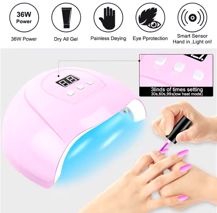 1. Adopting UV/LED dual light source induction, imitating sunlight, not hurting hands, 180 degree uniform irradiation without dead ends, easy nail art.