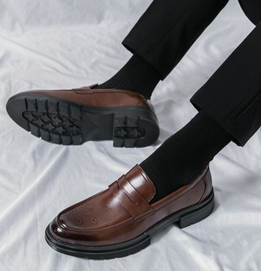 A great and comfortable design this loafer features a classic lightweight moc-toe, Italian style design, as well as a non-skid durable, flexible outsole for easy movement.The shoe also has a faux leather upper and mesh detailing on its side.