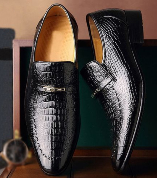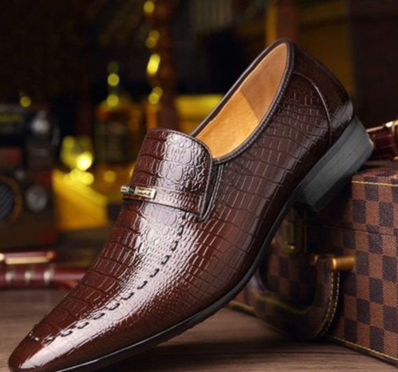 Mens Formal Shoes Fashion Crocodile Pattern Embossing Lefu Leather Shoes Brown
