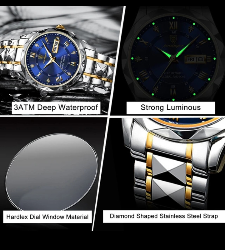 POEDAGAR Top Brand Luxury Man Wristwatch Waterproof Luminous Date Week Men Watches Stainless Steel Quartz Men's Watch Male reloj Quality set