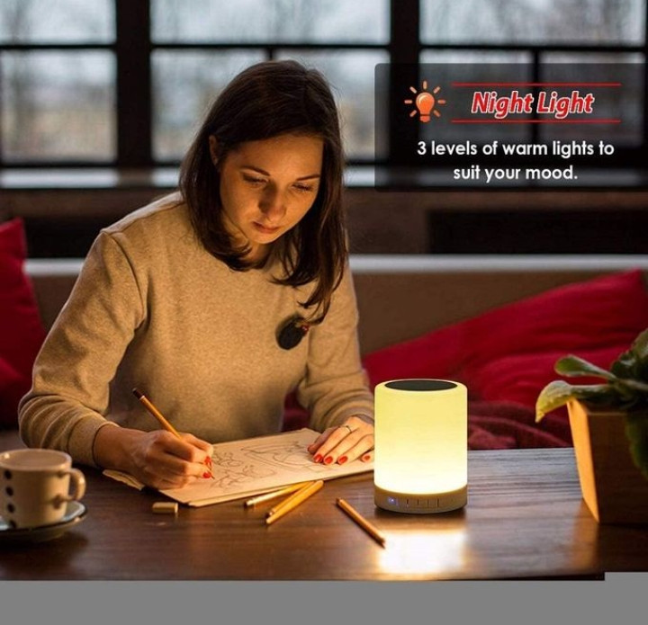 • Works as a lamp and speaker; Smart Touch LED Mood Lamp + Bluetooth 4.2 Speaker + Wireless Music Player + Color.