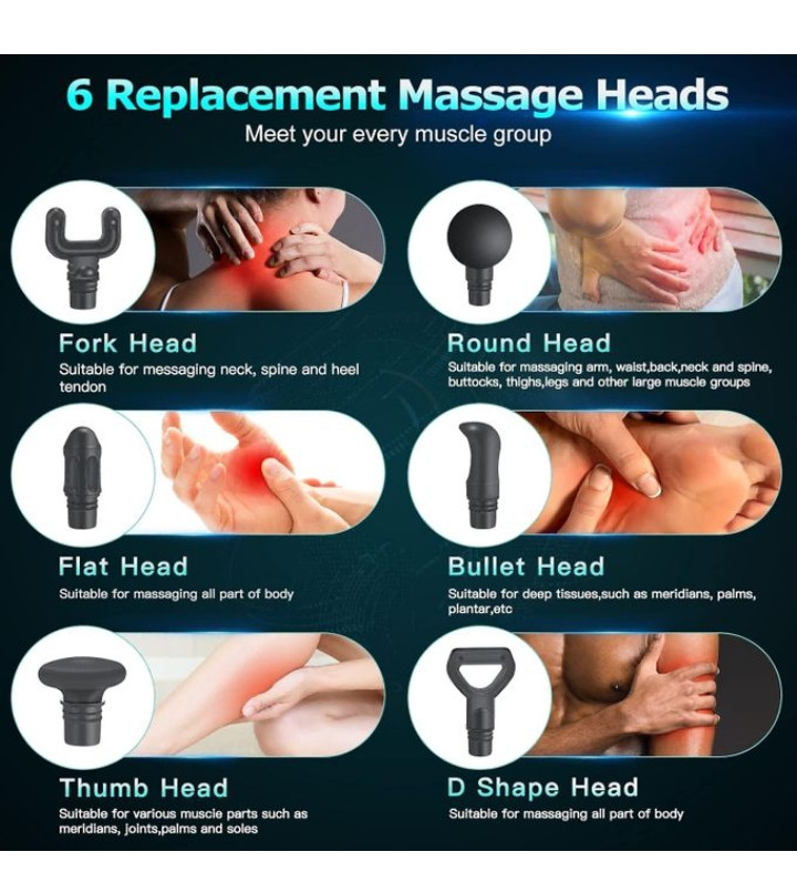 • [6 Massage Heads]This massager is equipped with 6 professional-grade massage heads, namely a ball head, cylindrical head, flat head, U-shaped head, thumb head, and D-shaped head. They are suitable for different body parts and can help you. Massage the whole body to relieve fatigue.