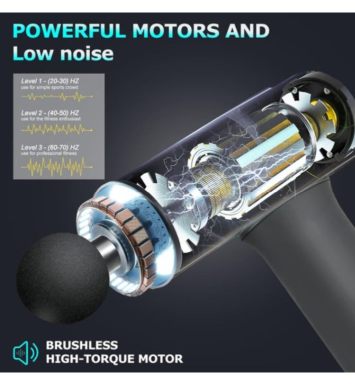 【Advanced Noise Reduction Technology】Handheld Muscle Massager has noise reduction technology that offers high performance and low noise. extremely quiet during the massage; Deep Tissue Massager with high precision mode, head and body are closely related, effectively reducing noise, Excellent brushless motor for noise reduction (less then 55dB), as quiet as a normal electric toothbrush.